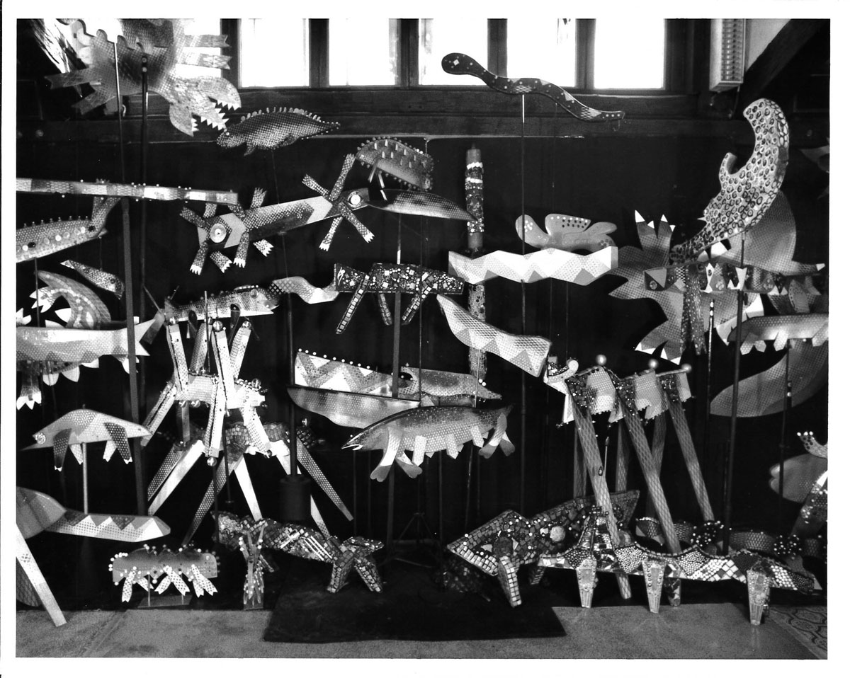Gerome Kamrowski joined the faculty at the University of Michigan at Ann Arbor in 1946. In 1958 in Detroit, he organized the Hylozoist Group whose purpose was to explore the use of industrial materials in their work. Kamrowski's first solo exhibition was at Mortimer Brandt Gallery, New York in 1946. Since that time he was shown at galleries and museums across the country, with the most recent in New York, a group exhibition entitled, "Decades of American Modernism, 1901-49" , Martin Diamond Fine Arts, New York (1982). Other group shows include The Whitney Museum of Art, New York (1979); and the Museum of Modern Art, New York (1978). Solo exhibitions include "Paintings and Works on Paper 40-47," Monique Knowlton Gallery, New York (1978); Gallery 2269, Chicago (1978); Scarab Club, Detroit (1966), Galerie Creuze, Paris (1957); and many exhibitions at Peggy Guggenheim's Art of this Century Gallery, New York. Past exhibitions have focused on Kamrowski's early works, while Artists Space will show the first body of recent work to be seen in New York. Born in Warren, Minnesota in 1914, Kamrowski now lives in Ann Harbor, Michigan.