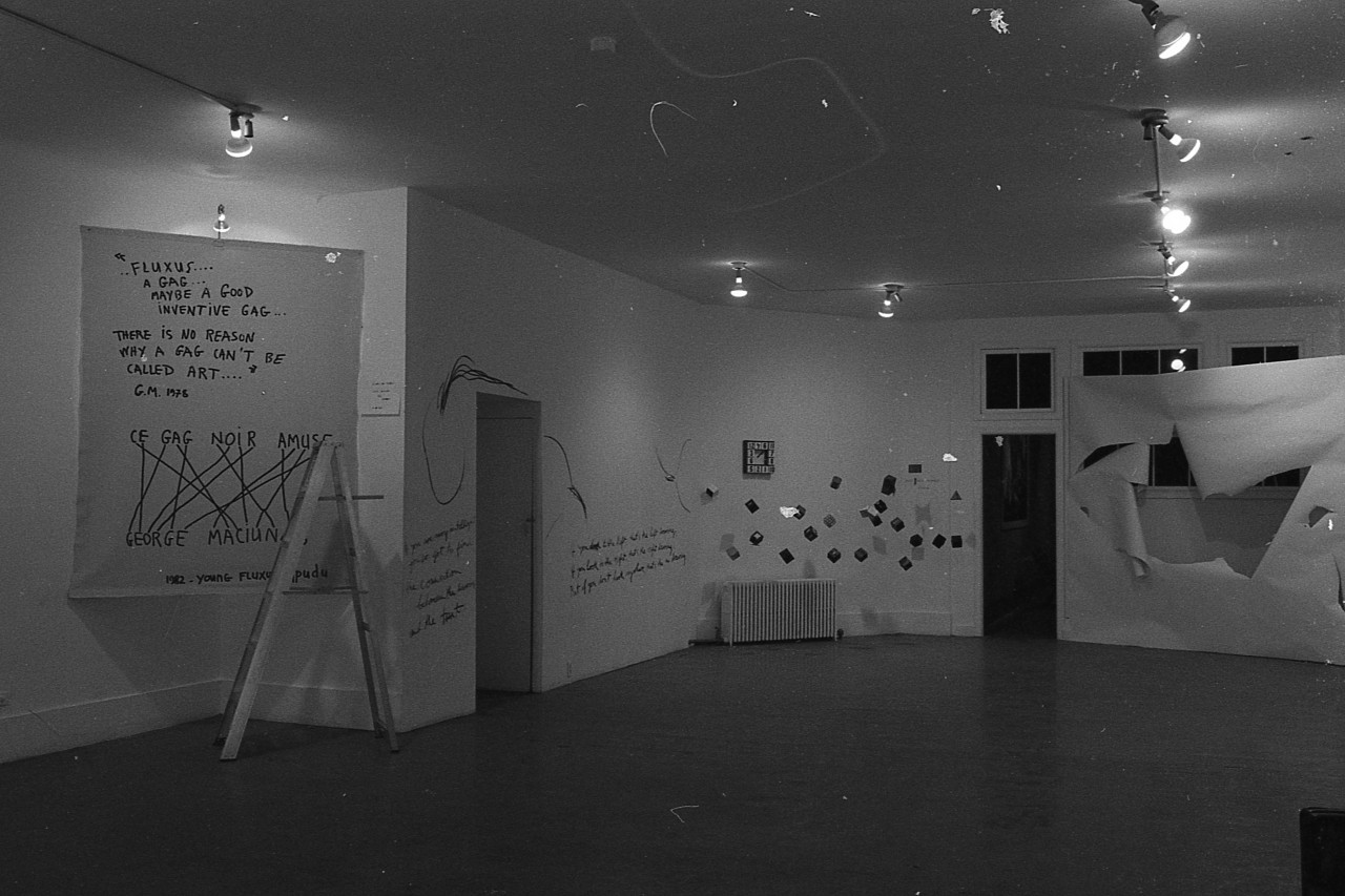 The spread and growth of Fluxus helped to create the climate for the artistic innovations which market the late '60s and transformed our notion of art in the '70s, visible today not only in attitudes toward performance, construction, and ephemeral art forms, but even in the expanded ideas which have entered painting and sculpture in the '80s. This exhibition explores the directions and attitudes in art taken by eleven of the artists most directly involved in Fluxus.