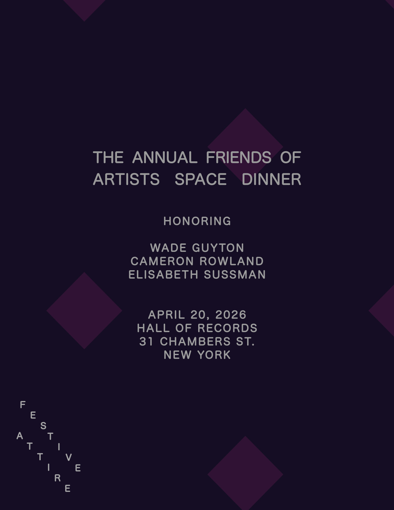 Artists Space is thrilled to announce the details of our forthcoming Friends of Artists Space Dinner, which will be held on April 20th at the historic Hall of Records. This year, we will honor three extraordinary figures whose work has profoundly shaped our field: artists Wade Guyton and Cameron Rowland, and curator Elisabeth Sussman.