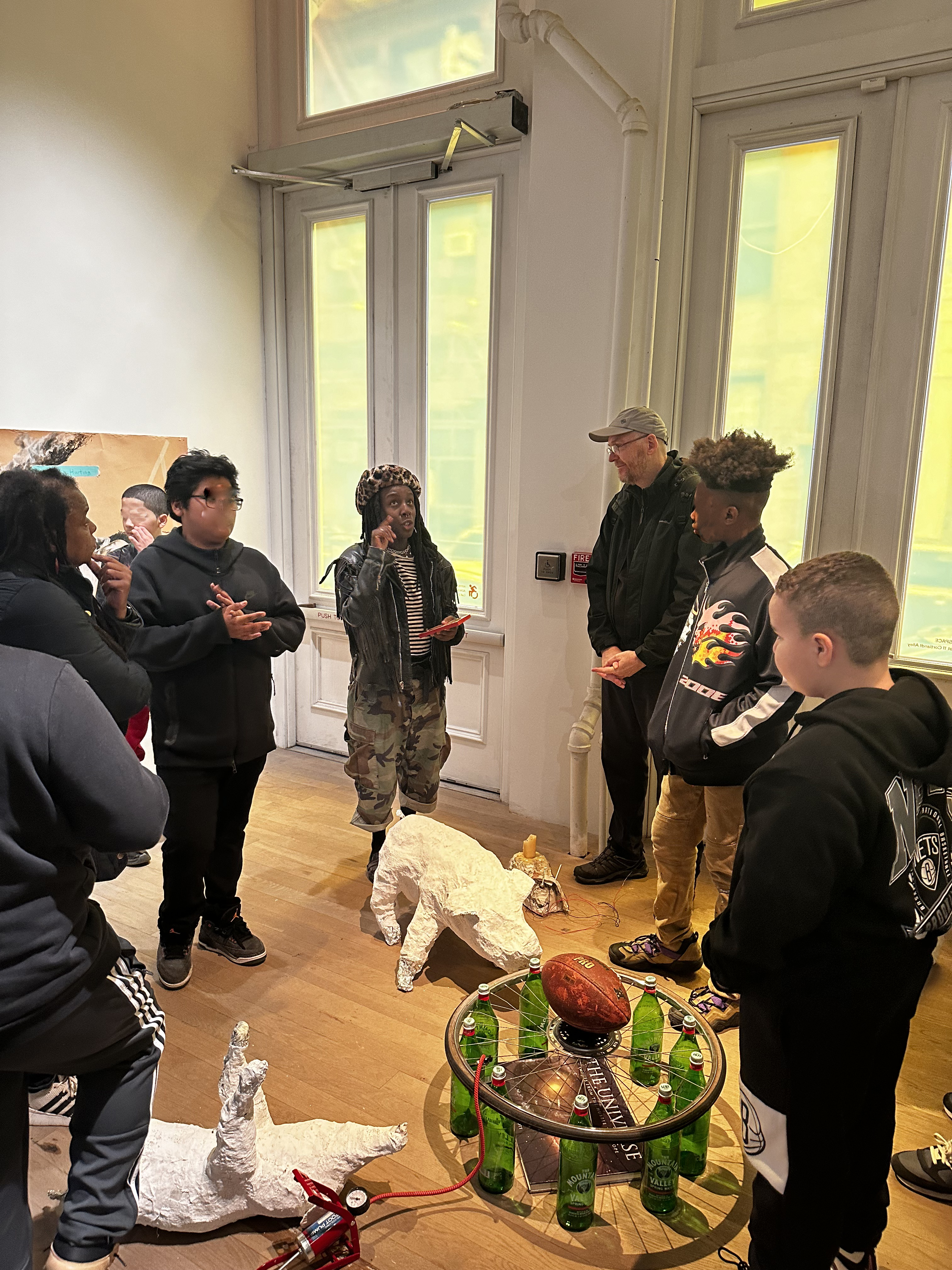 Caption Ei Arakawa with Gela Patashuri, NYC Corrals & Iwaki Ocean’s Temporal Visit, 2021. Dimensions variable. Image courtesy Artists Space, New York. Photo: Filip Wolak.