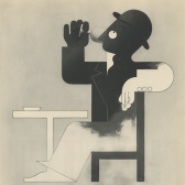 • A posterr with the silhouette of a man in the middle, dressed like a cowboy. Before him appear blue scan-lines, as if on a television set, which are boxed off into several rectangles.