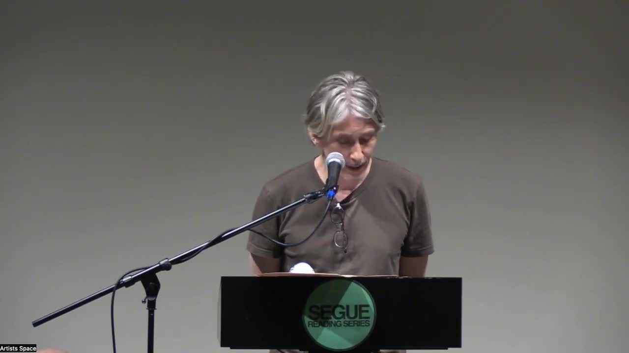 Lisa Markuson: Bowery Poetry ❤ John Giorno. Reading documentation, August 16, 2017, Artists Space. [Video documentation of a woman performing a reading for a seated audience.] -