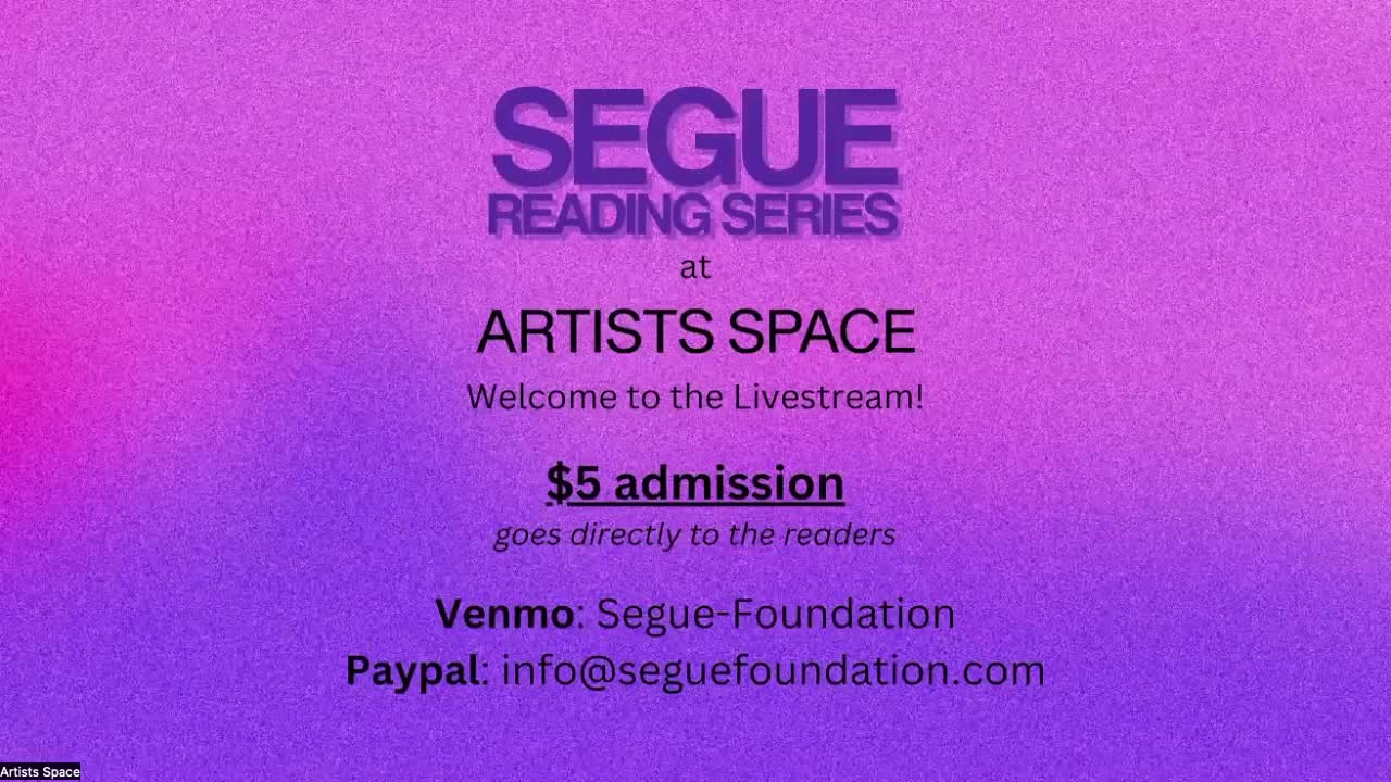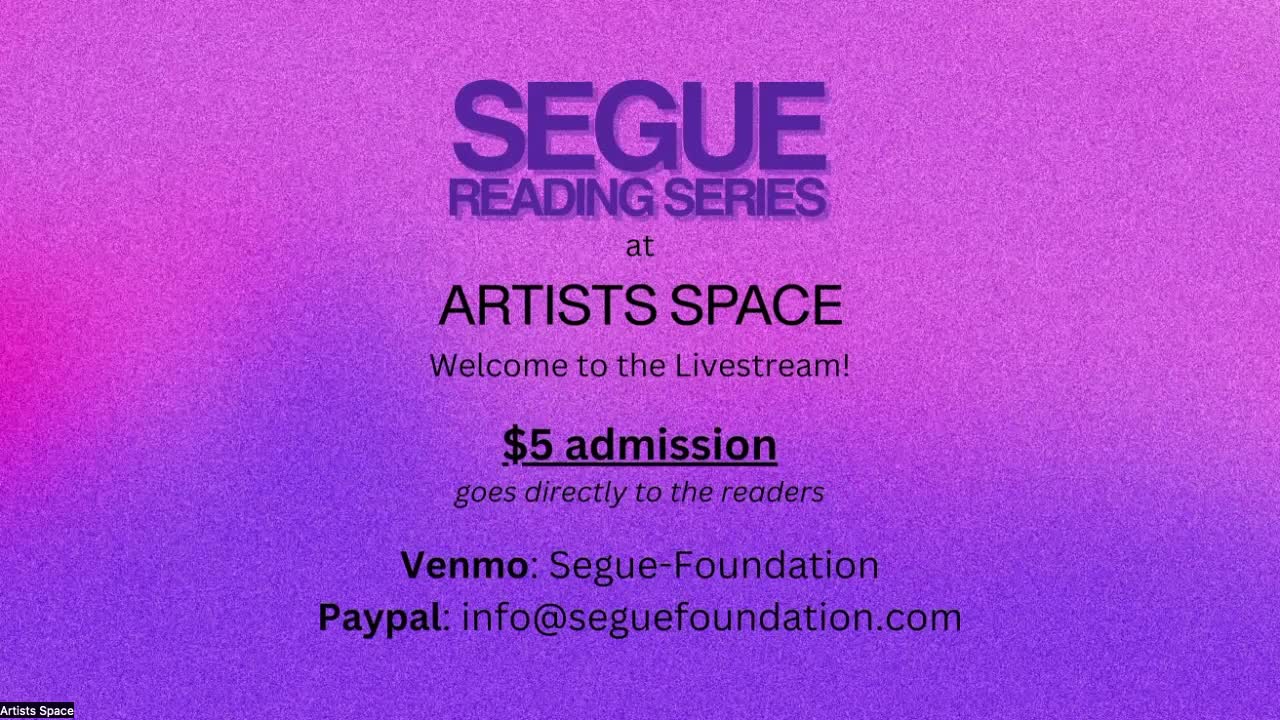 Segue Reading Series: E.J. McAdams & Kamden Hilliard. November 13, 2021. Artists Space. -